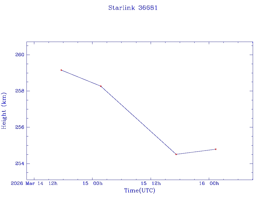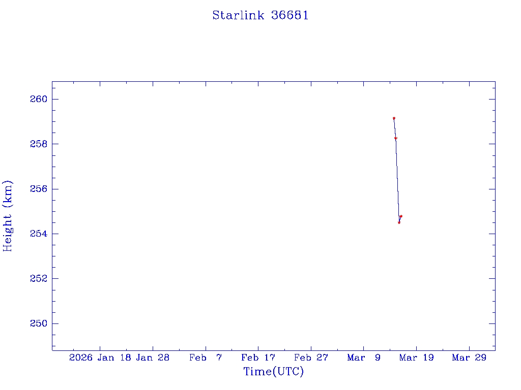 | Starlink 36681 | S68185 | D | 2026 Mar 14 | * | - |  |  |  |