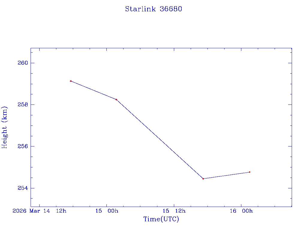 | Starlink 36680 | S68186 | D | 2026 Mar 14 | * | - |  |  |  |