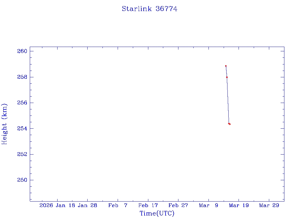 | Starlink 36774 | S68193 | D | 2026 Mar 14 | * | - |  |  |  |