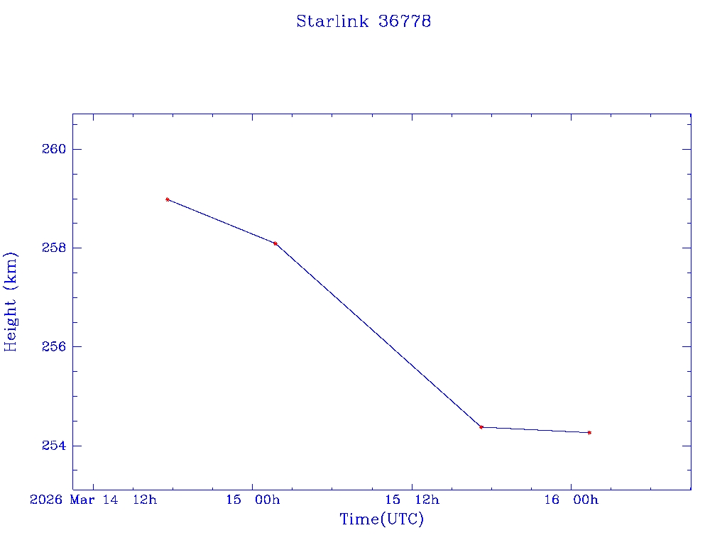| Starlink 36778 | S68195 | D | 2026 Mar 14 | * | - |  |  |  |