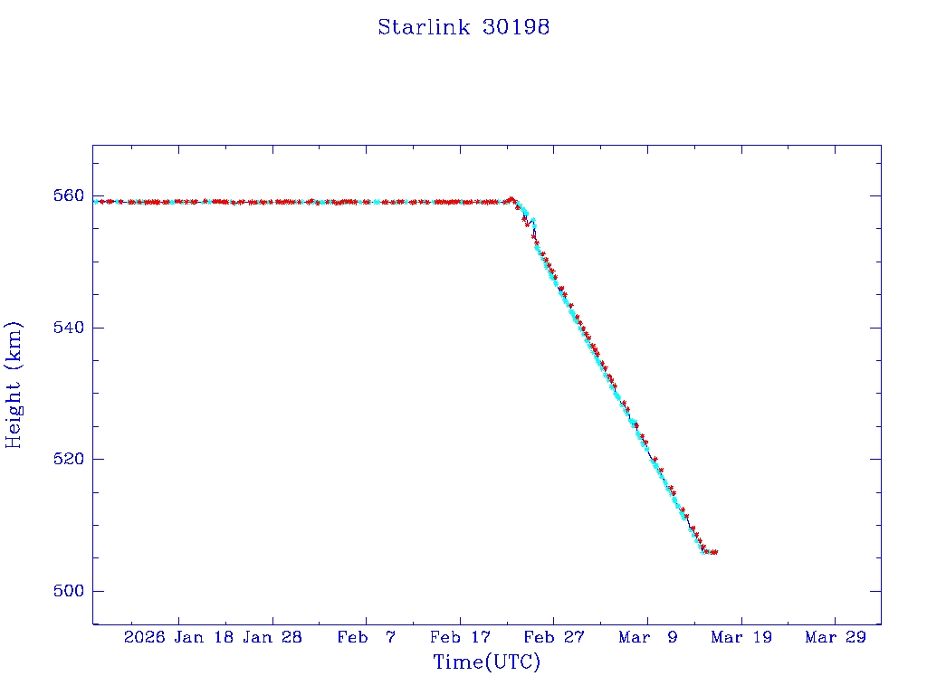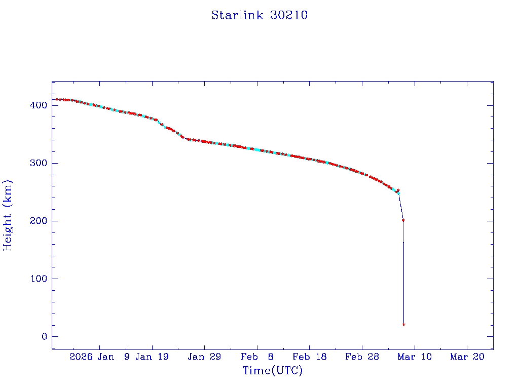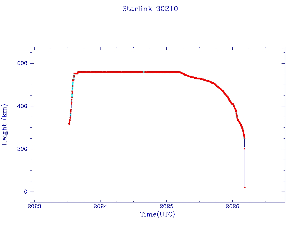 | Starlink 30210 | S57292 | R | 2023 Jul 10 | 2026 Jan 23? | 2026 Mar 7 |  |  |  |