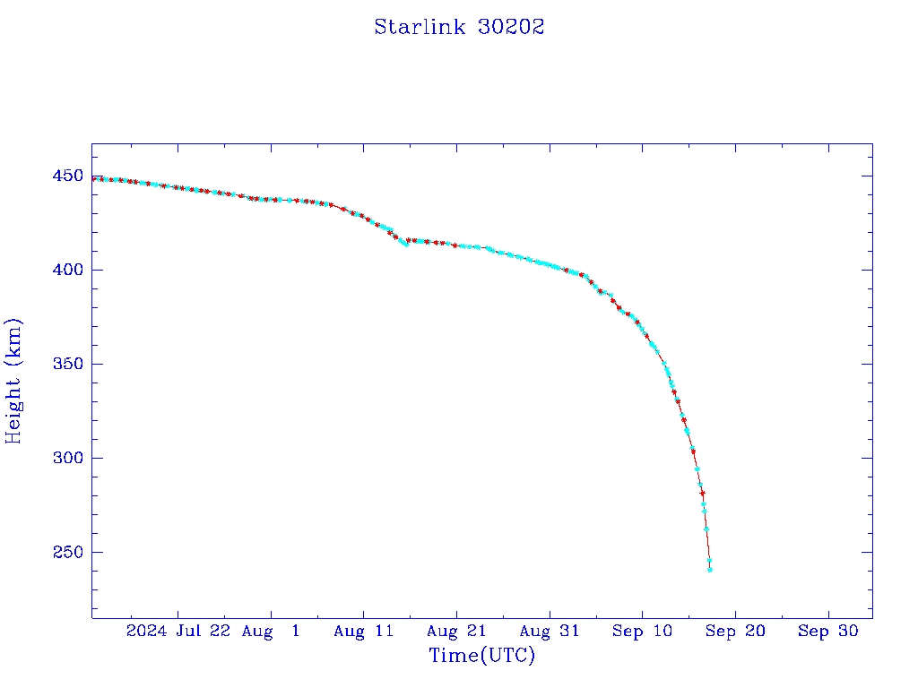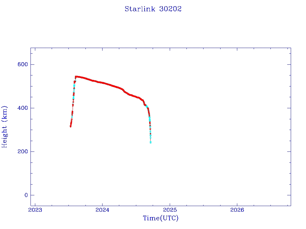| Starlink 30202 | S57293 | M | 2023 Jul 10 | 2023 Aug 8 | 2024 Sep 17 |  |  |  |