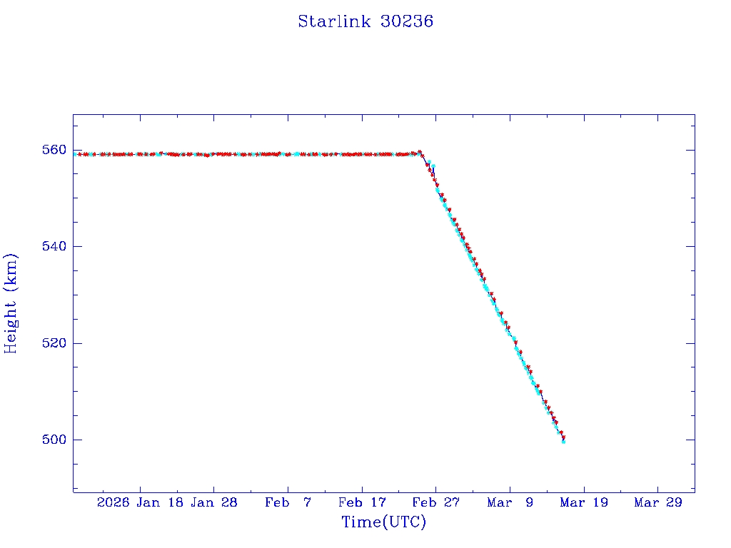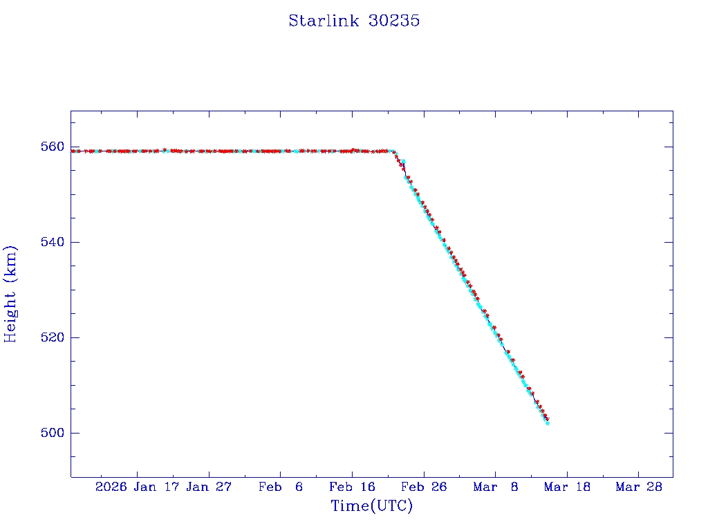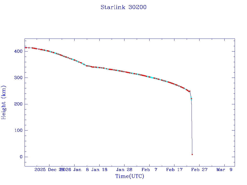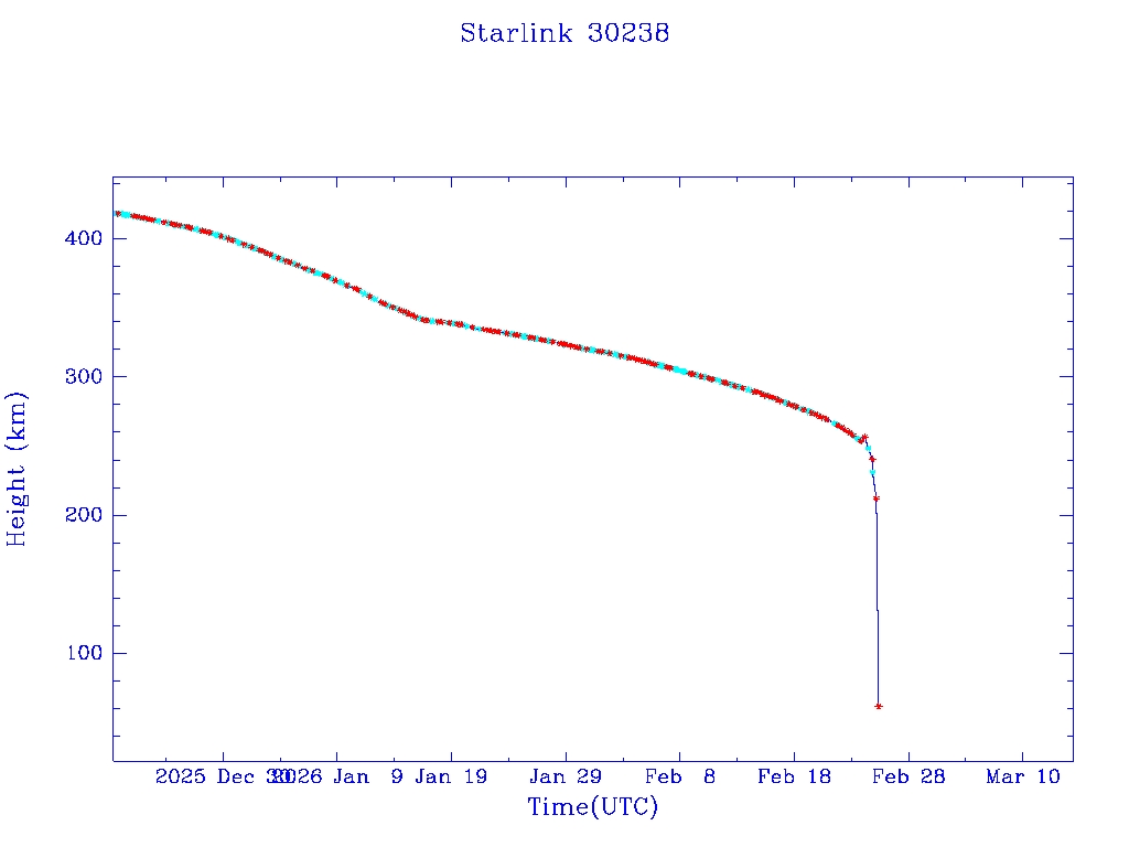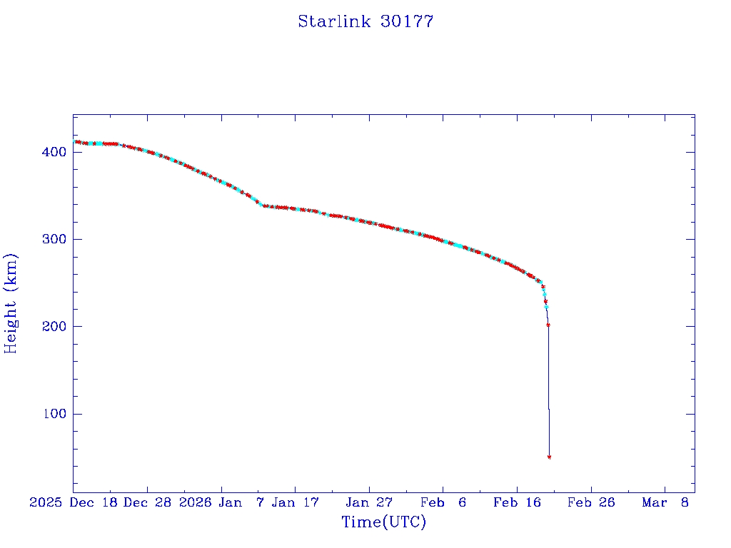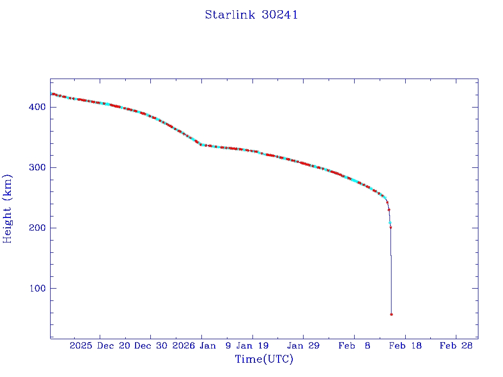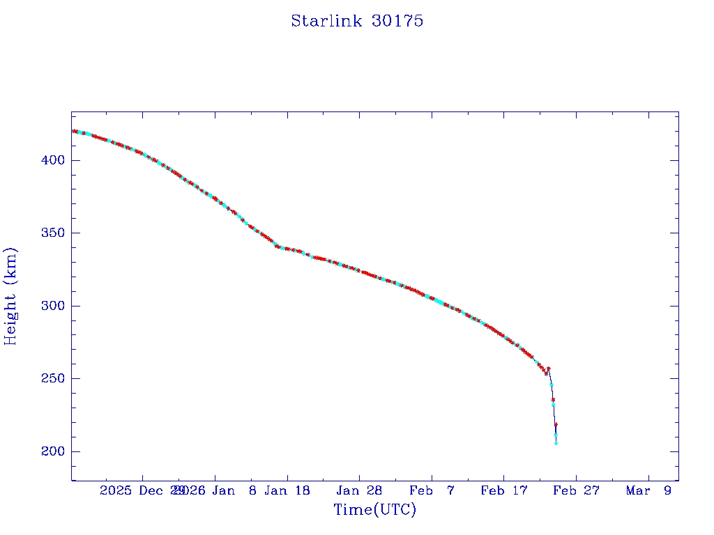 | Starlink 30175 | S57311 | R | 2023 Jul 10 | 2026 Jan 15 | 2026 Feb 24 |  |  |  |