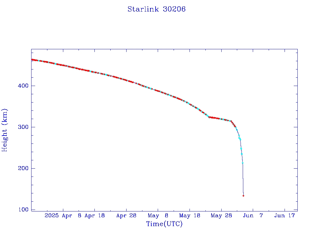 | Starlink 30206 | S57295 | R | 2023 Jul 10 | 2025 May 31? | 2025 Jun 4 |  |  |  |