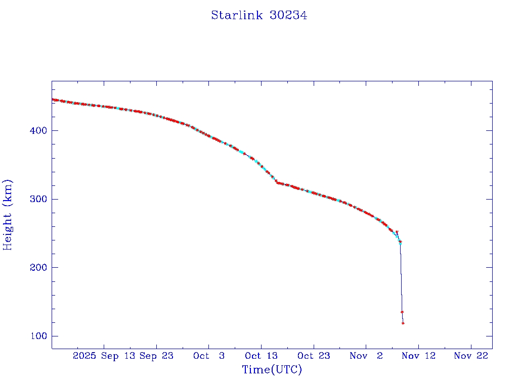 | Starlink 30234 | S57297 | R | 2023 Jul 10 | 2025 Oct 17? | 2025 Nov 9 |  |  |  |
