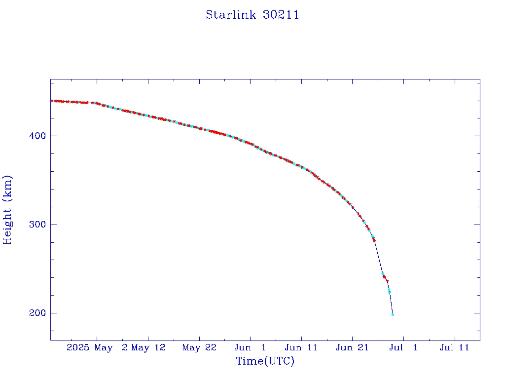 | Starlink 30211 | S57304 | R | 2023 Jul 10 | 2025 May 1? | 2025 Jun 28 |  |  |  |