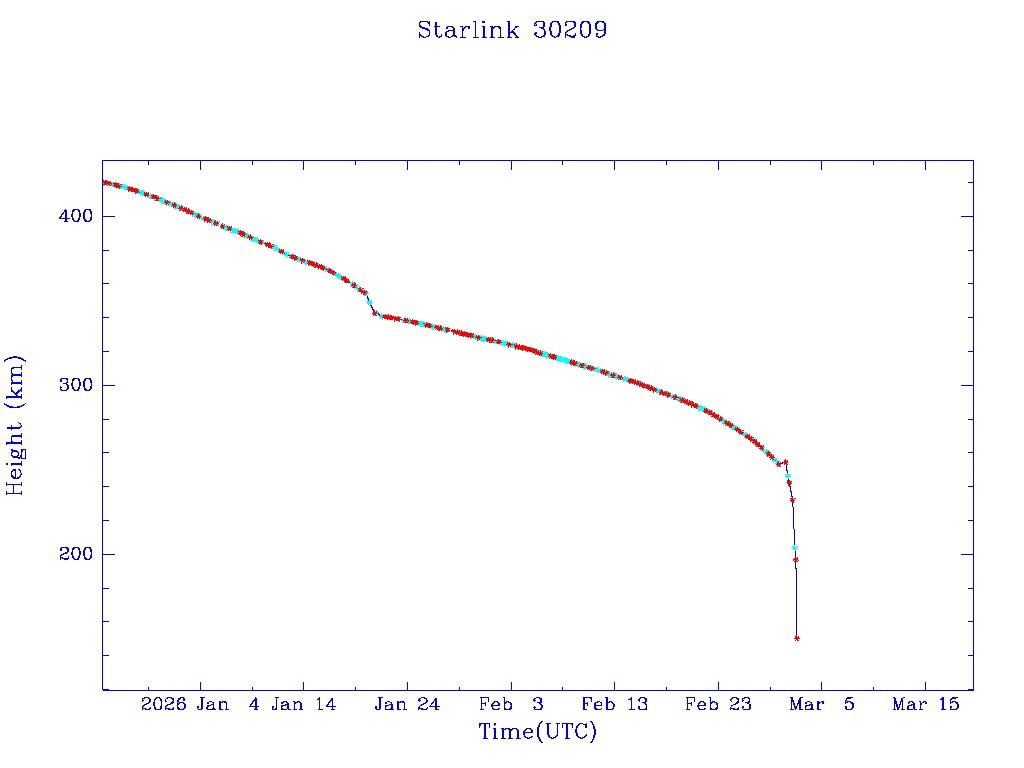 | Starlink 30209 | S57307 | R | 2023 Jul 10 | 2026 Jan 21? | 2026 Mar 2 |  |  |  |