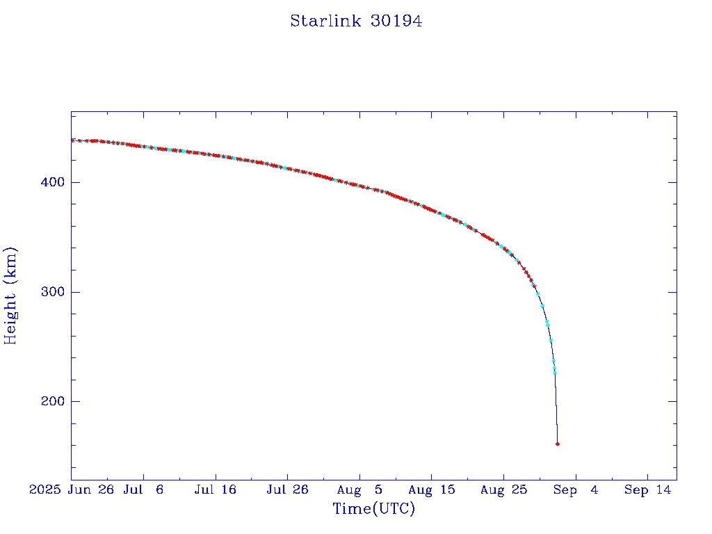 | Starlink 30194 | S57308 | R | 2023 Jul 10 | 2025 Jun 26? | 2025 Sep 1 |  |  |  |