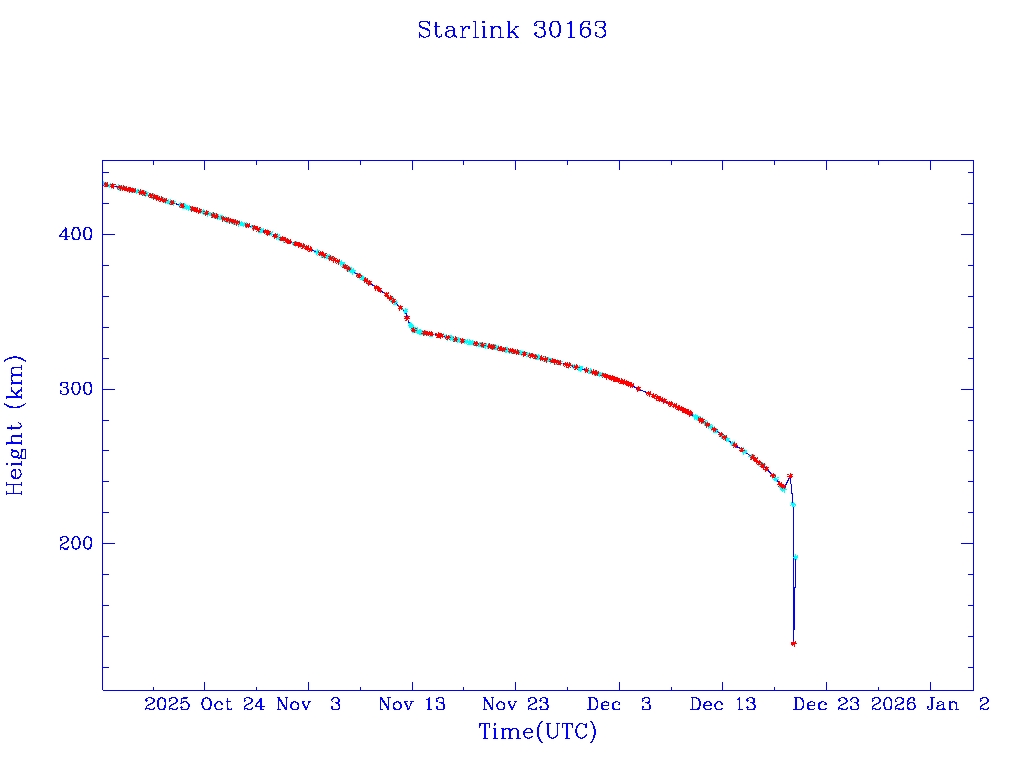 | Starlink 30163 | S57309 | R | 2023 Jul 10 | 2025 Nov 14? | 2025 Dec 20 |  |  |  |
