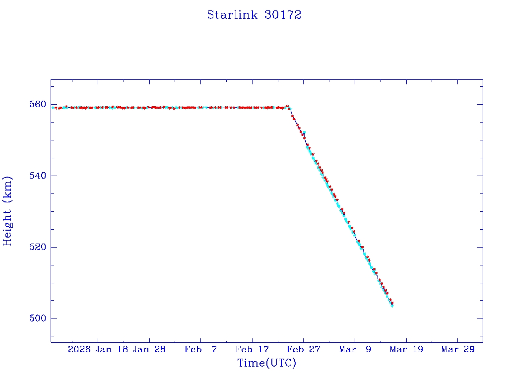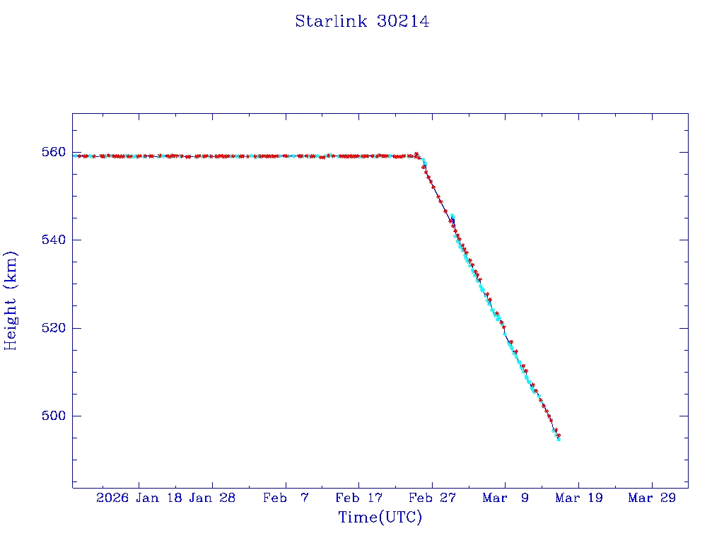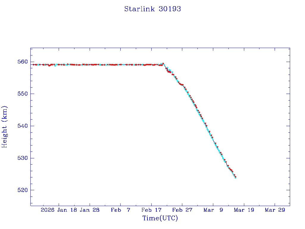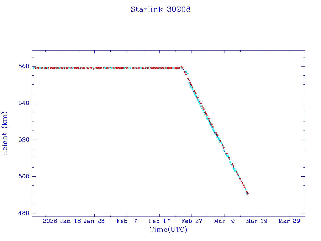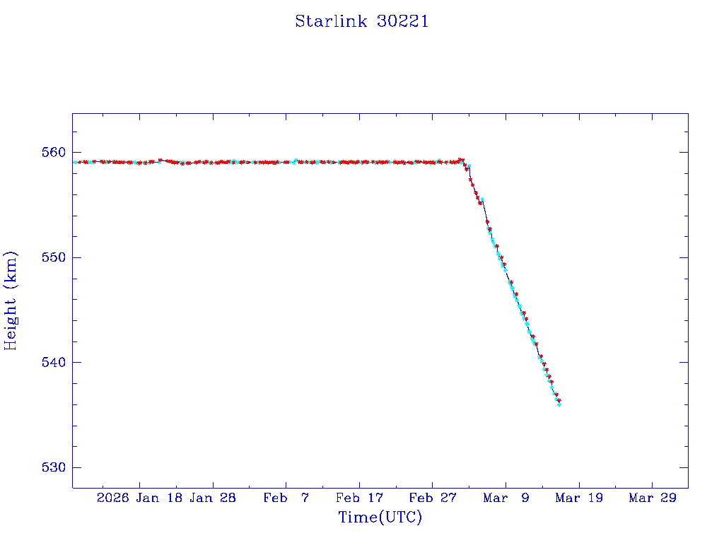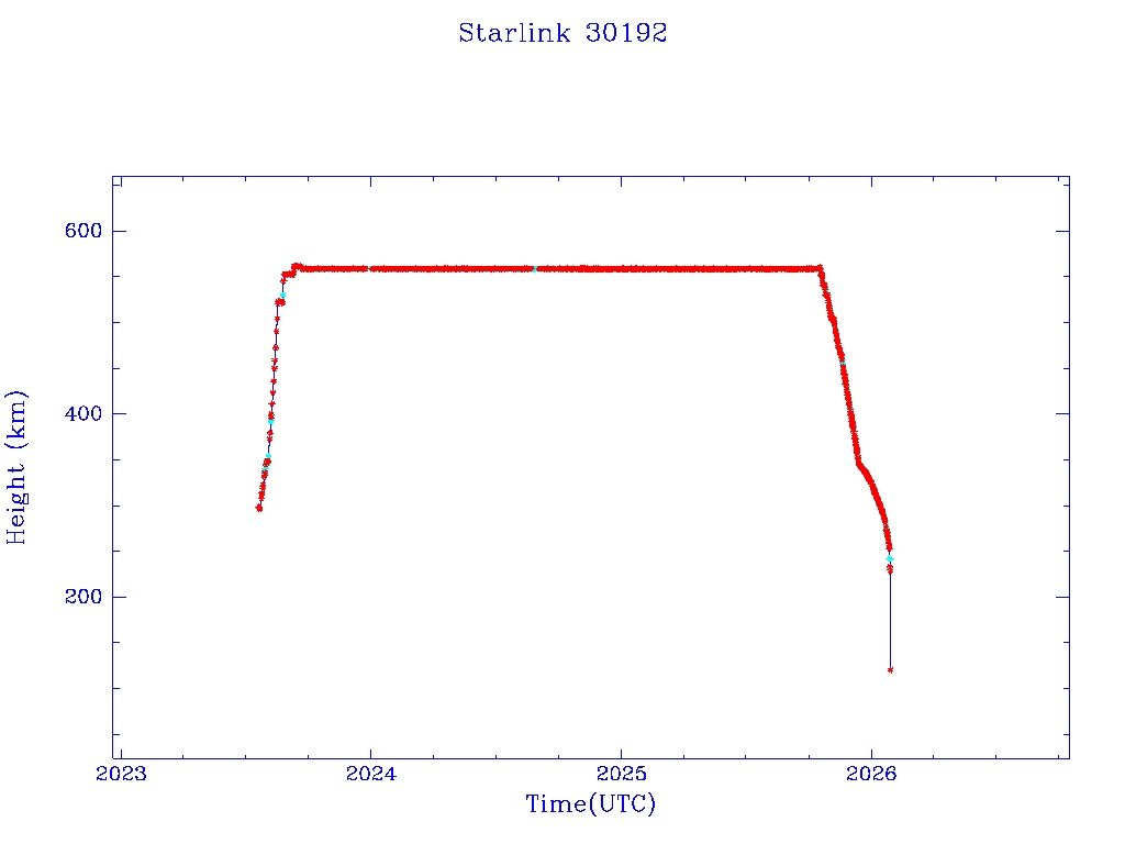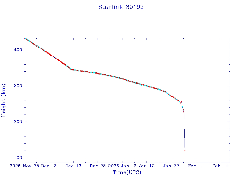 | Starlink 30192 | S57405 | R | 2023 Jul 20 | 2025 Dec 12? | 2026 Jan 29 |  |  |  |