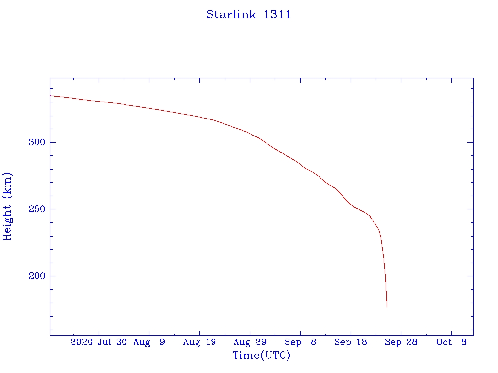 | Starlink 1311 | S45363 | F | 2020 Mar 18 | 2020 Apr 5? | 2020 Sep 25 |  |  |  |