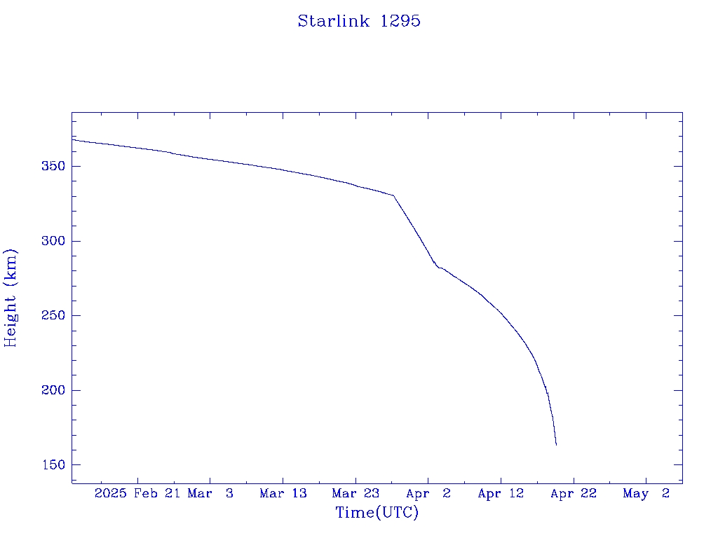 | Starlink 1295 | S45373 | R | 2020 Mar 18 | 2025 Apr 2? | 2025 Apr 19 |  |  |  |