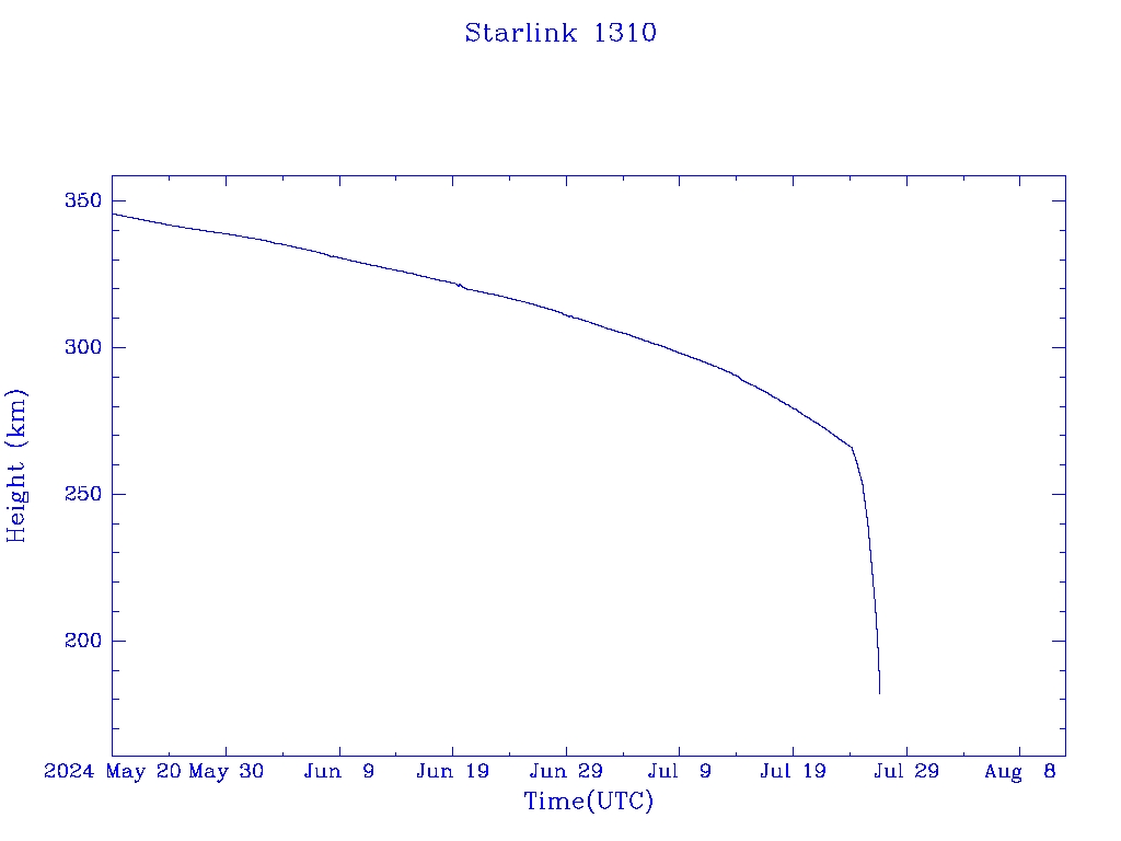 | Starlink 1310 | S45378 | R | 2020 Mar 18 | 2024 Apr 28 | 2024 Jul 26 |  |  |  |