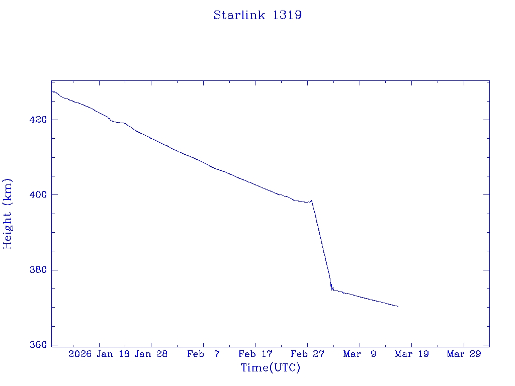 | Starlink 1319 | S45379 | R | 2020 Mar 18 | * | - |  |  |  |