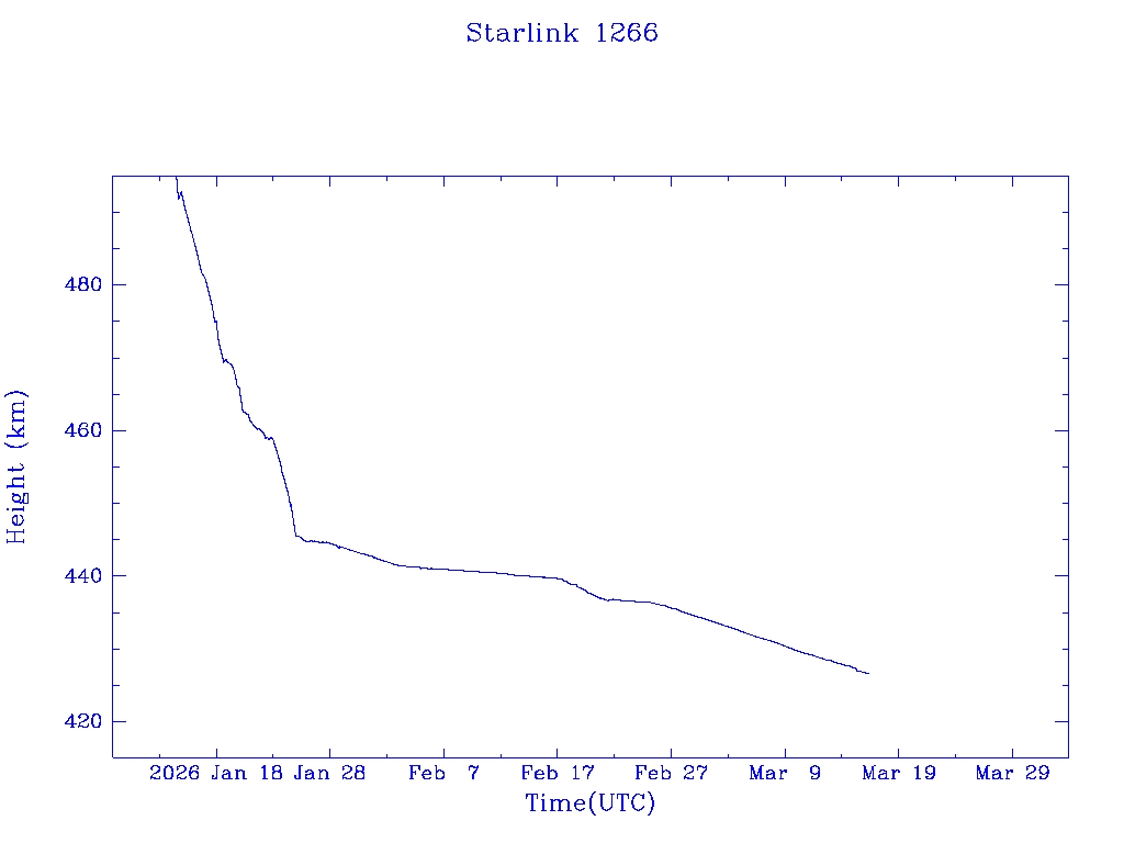 | Starlink 1266 | S45383 | R | 2020 Mar 18 | * | - |  |  |  |