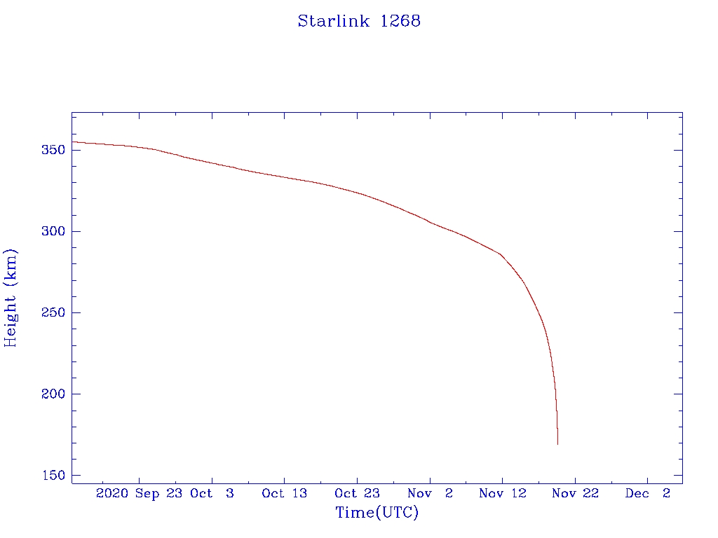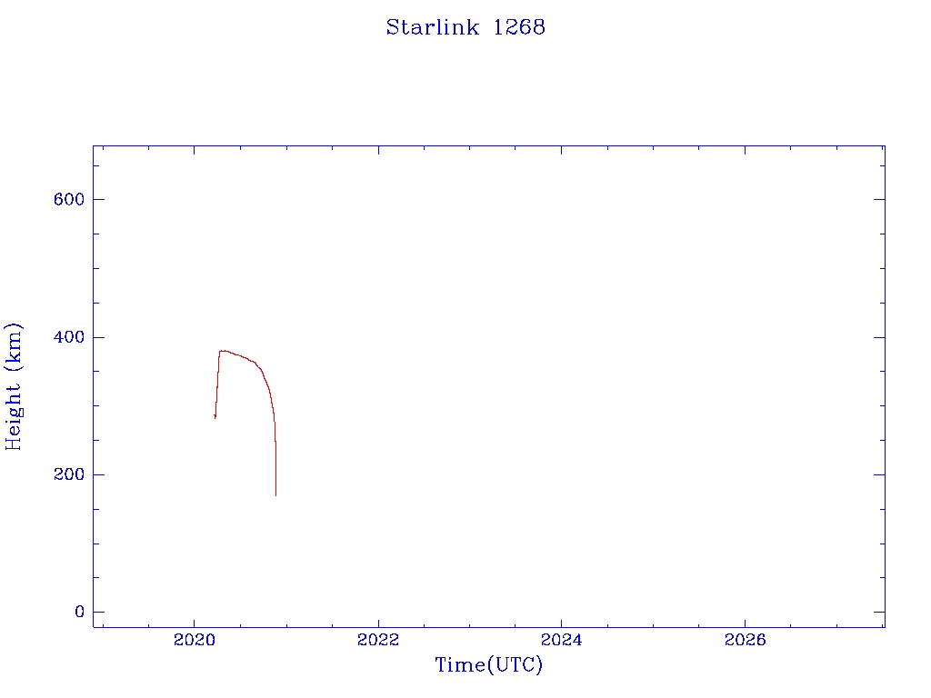 | Starlink 1268 | S45385 | F | 2020 Mar 18 | 2020 May 5? | 2020 Nov 19 |  |  |  |
