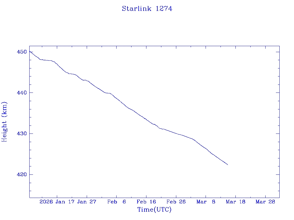 | Starlink 1274 | S45387 | R | 2020 Mar 18 | * | - |  |  |  |