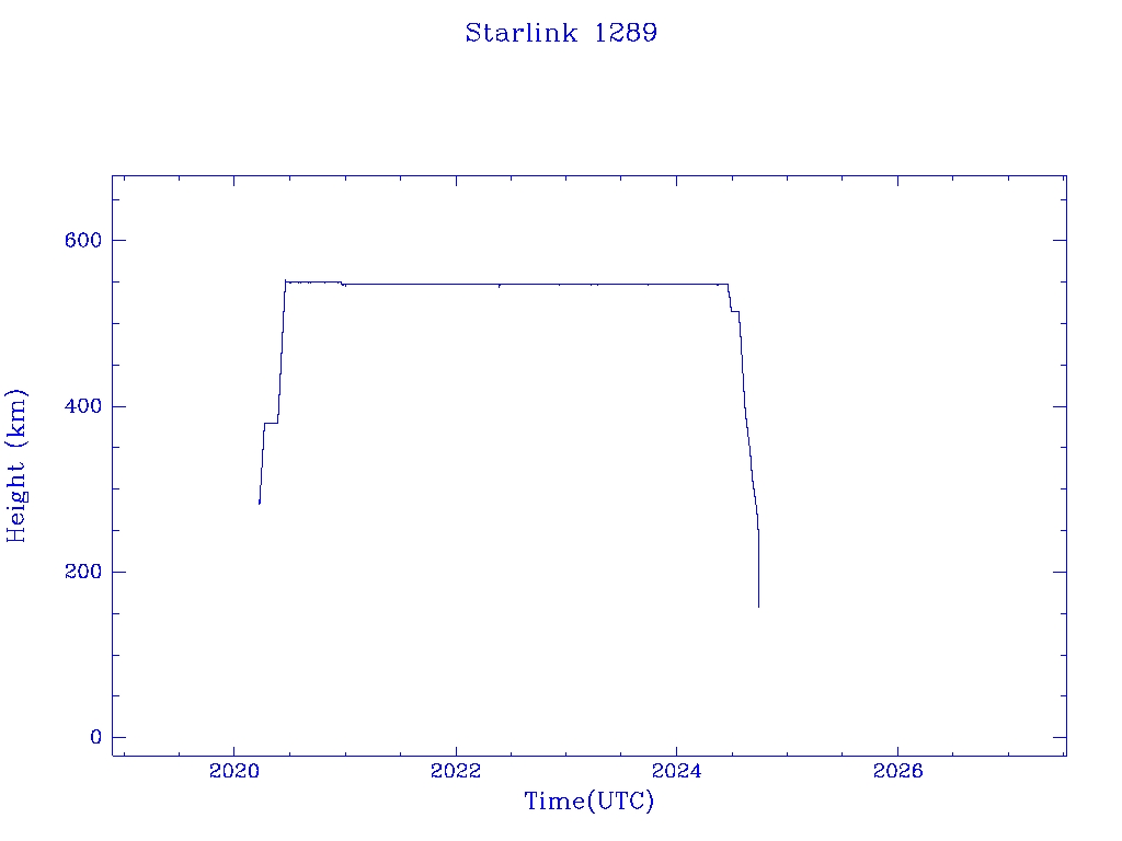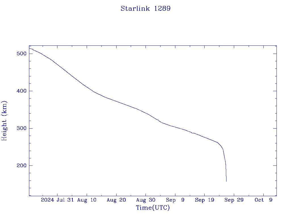 | Starlink 1289 | S45391 | R | 2020 Mar 18 | 2024 Sep 23? | 2024 Sep 26 |  |  |  |