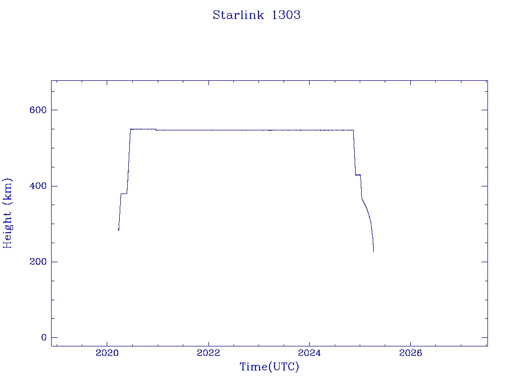 | Starlink 1303 | S45396 | R | 2020 Mar 18 | 2025 Jan 11? | 2025 Apr 6 |  |  |  |