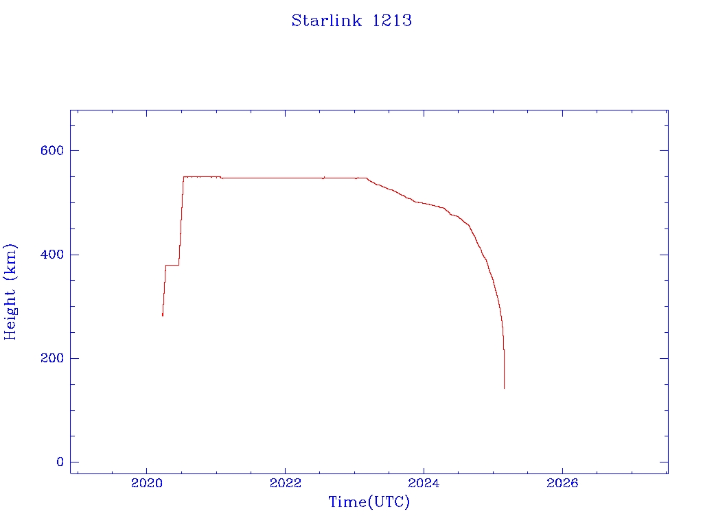 | Starlink 1213 | S45400 | M | 2020 Mar 18 | 2024 Nov 6 | 2025 Feb 27 |  |  |  |