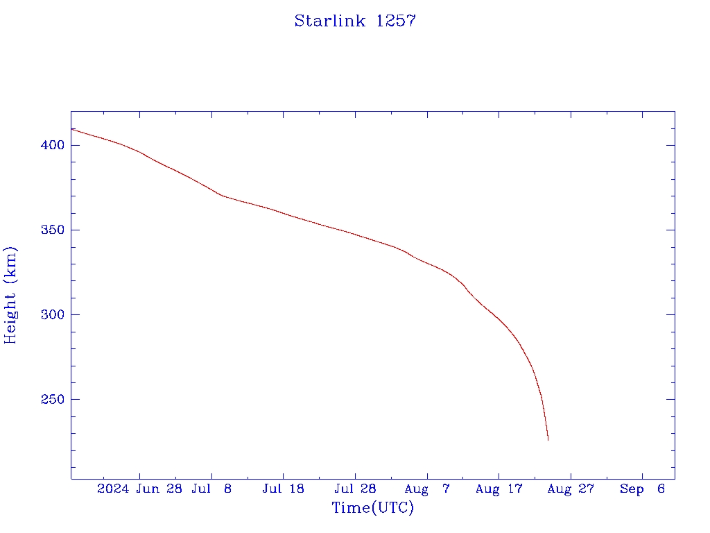 | Starlink 1257 | S45402 | M | 2020 Mar 18 | 2023 Sep 25 | 2024 Aug 24 |  |  |  |
