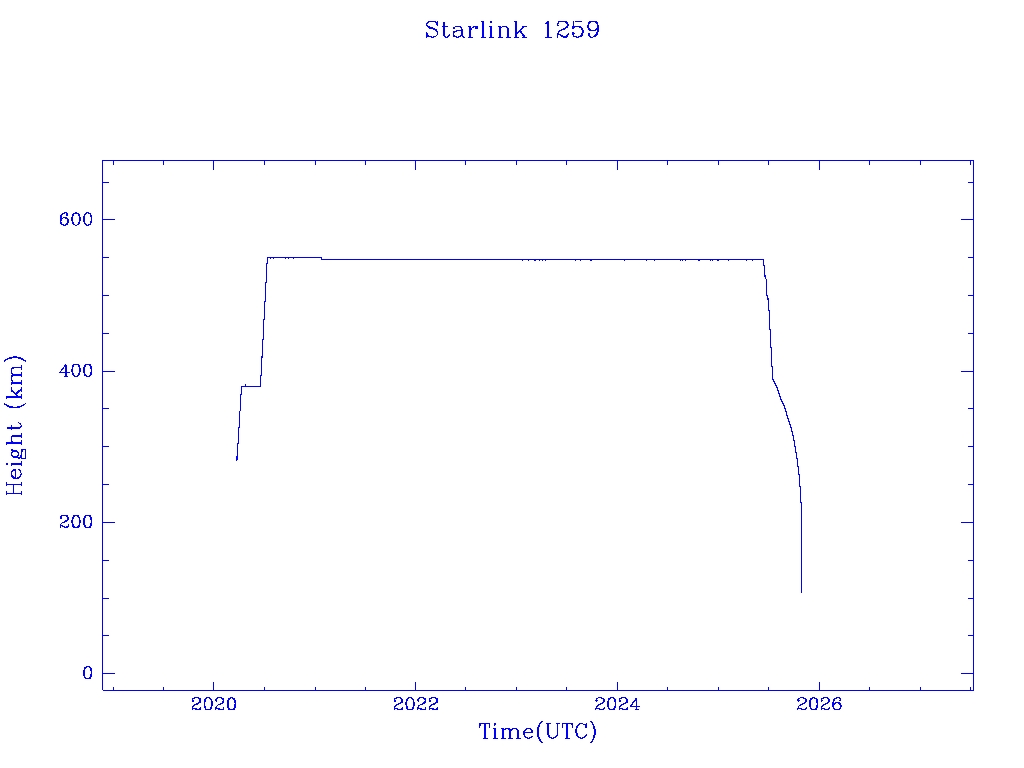 | Starlink 1259 | S45403 | R | 2020 Mar 18 | 2025 Jul 15? | 2025 Oct 28 |  |  |  |