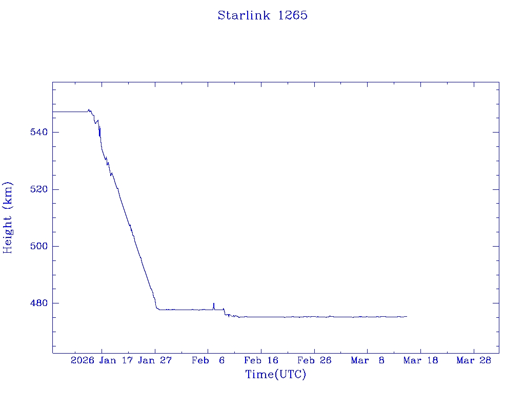 | Starlink 1265 | S45406 | O | 2020 Mar 18 | * | - |  |  |  |