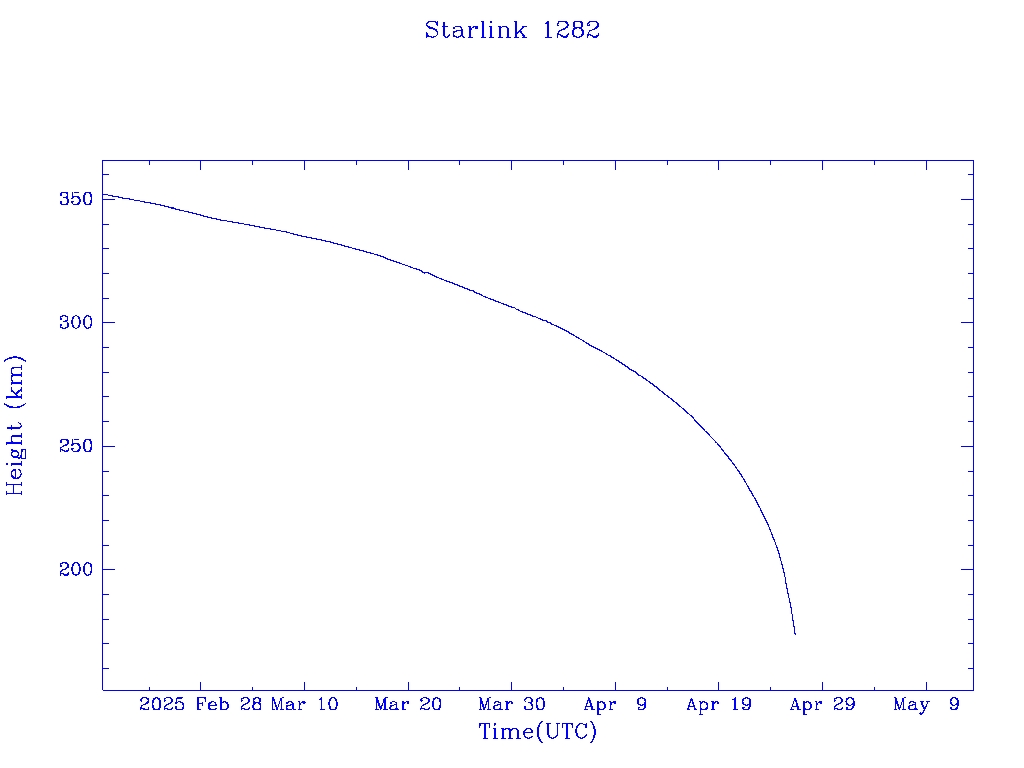 | Starlink 1282 | S45409 | R | 2020 Mar 18 | 2025 Jan 29? | 2025 Apr 26 |  |  |  |
