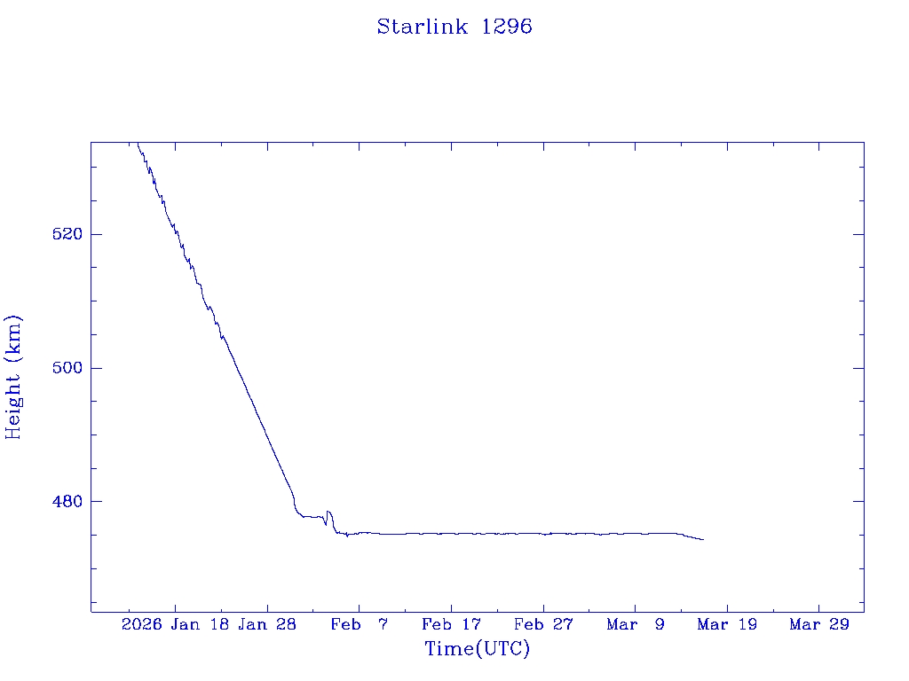 | Starlink 1296 | S45412 | O | 2020 Mar 18 | * | - |  |  |  |