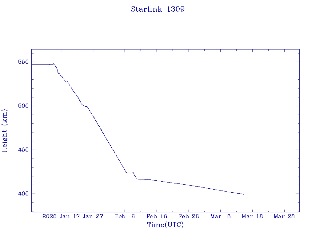 | Starlink 1309 | S45414 | R | 2020 Mar 18 | * | - |  |  |  |