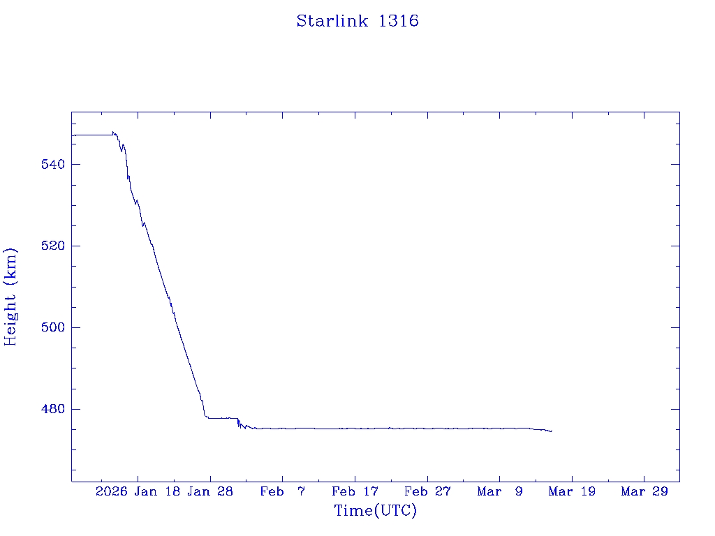 | Starlink 1316 | S45415 | O | 2020 Mar 18 | * | - |  |  |  |