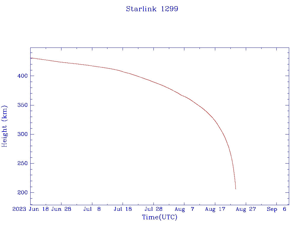 | Starlink 1299 | S45418 | M | 2020 Mar 18 | 2020 Jul 6? | 2023 Aug 24 |  |  |  |