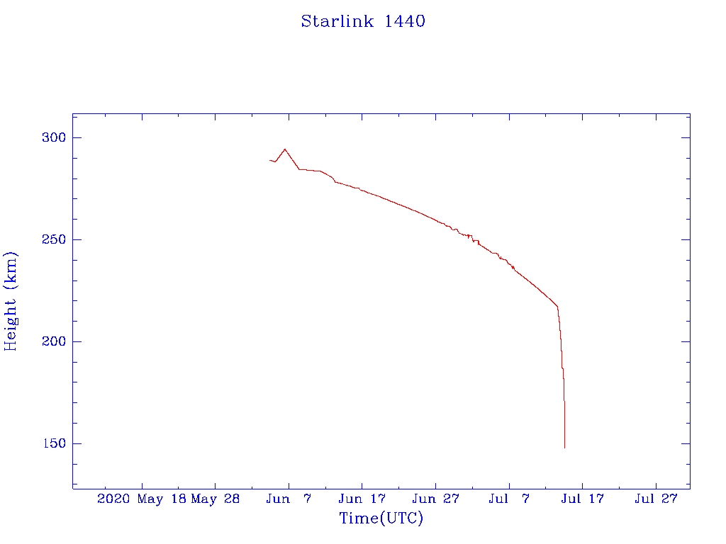 | Starlink 1440 | S45657 | F | 2020 Jun 4 | 2020 Jul 14 | 2020 Jul 14 |  |  |  |