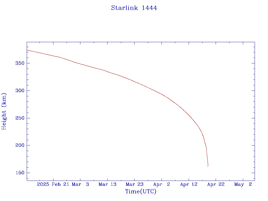 | Starlink 1444 | S45661 | M | 2020 Jun 4 | 2023 Nov 18 | 2025 Apr 19 |  |  |  |