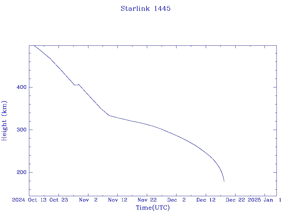 | Starlink 1445 | S45662 | R | 2020 Jun 4 | 2024 Nov 9? | 2024 Dec 19 |  |  |  |