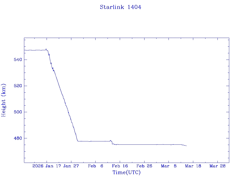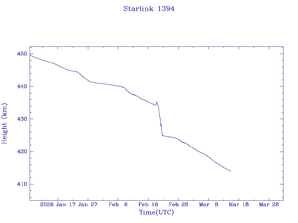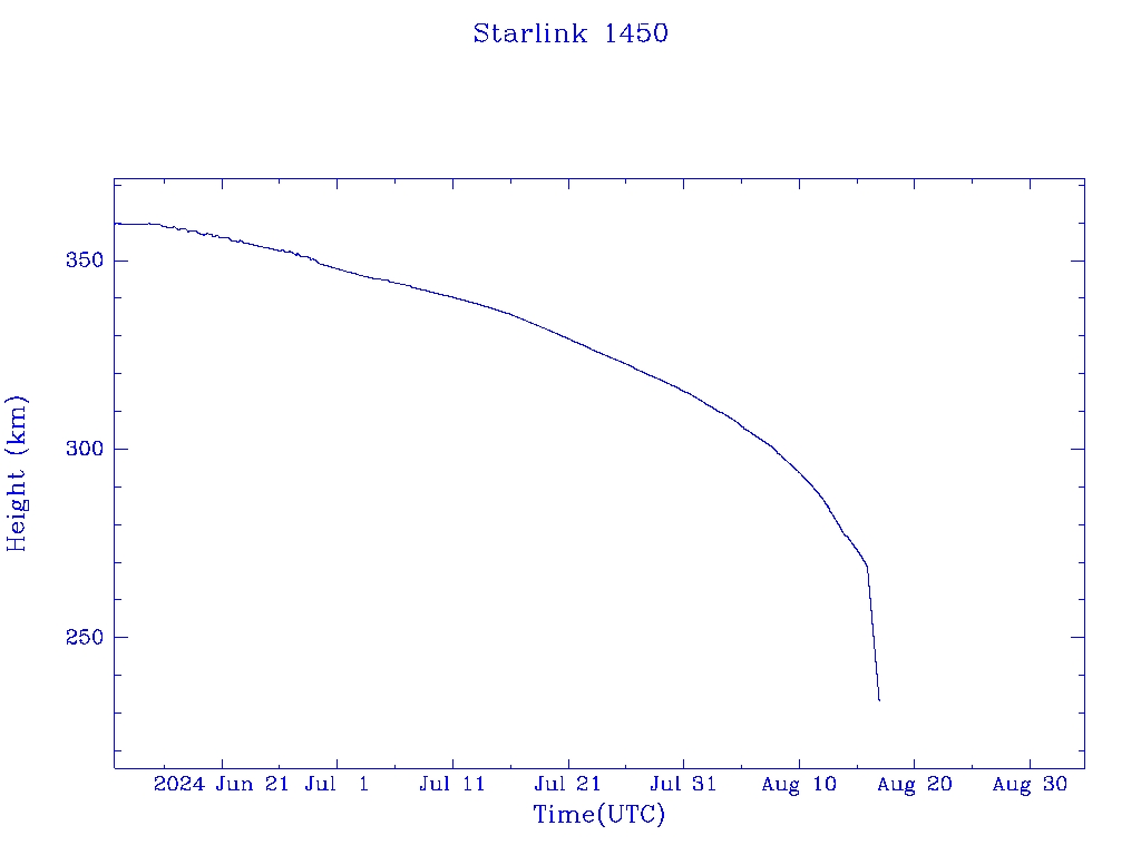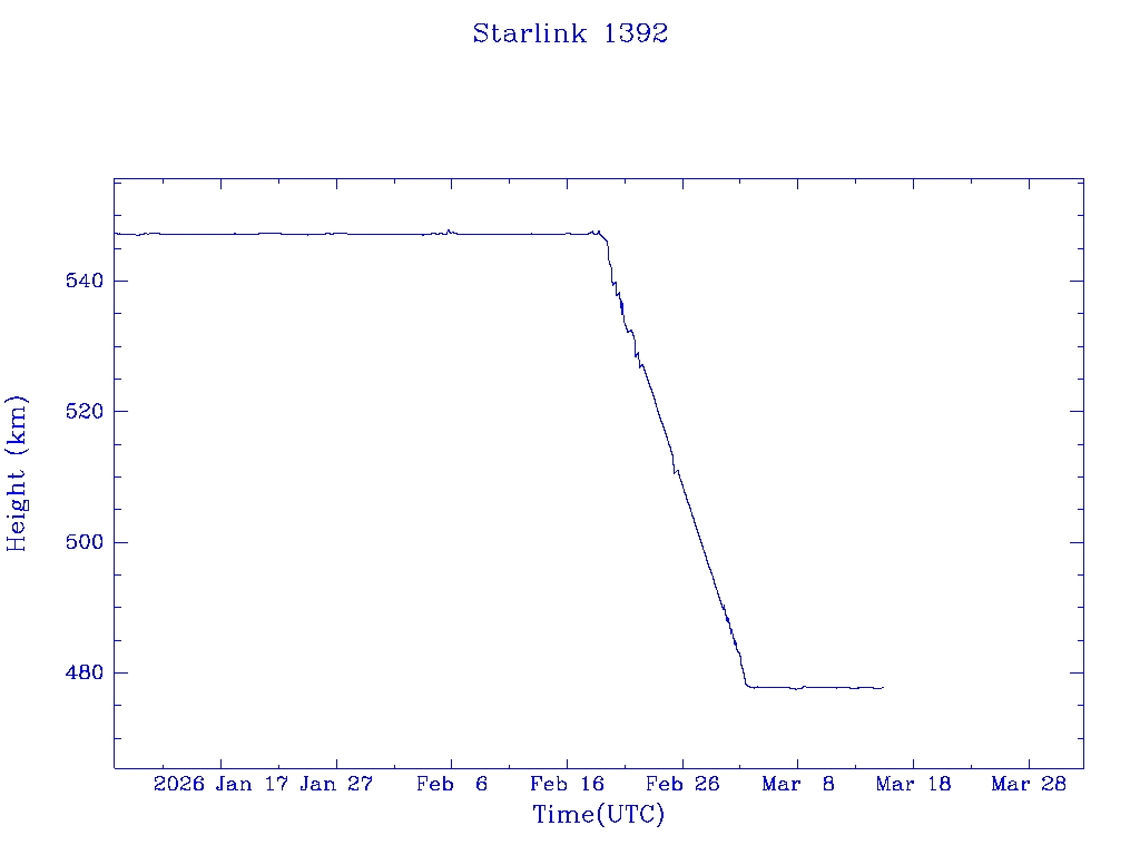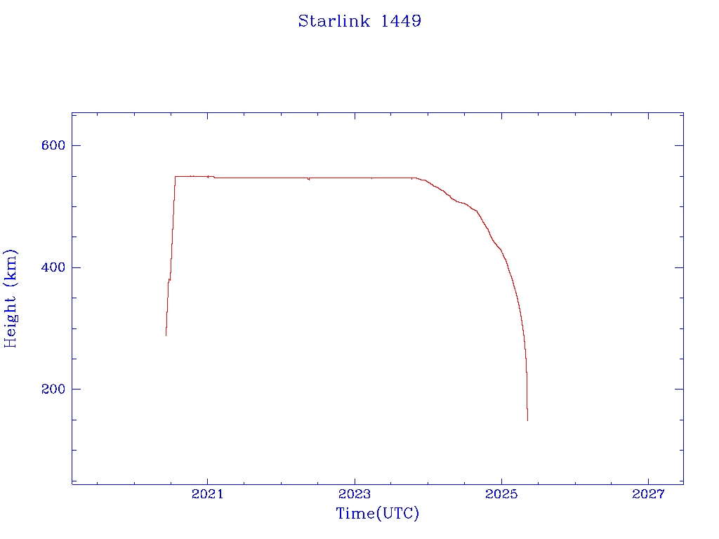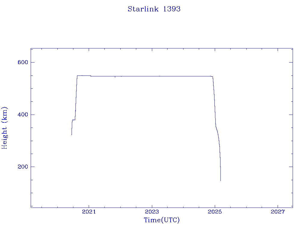 | Starlink 1393 | S45678 | R | 2020 Jun 4 | 2025 Feb 16? | 2025 Mar 7 |  |  |  |