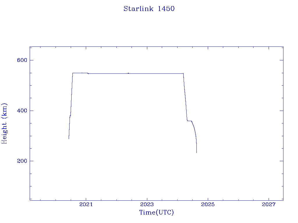 | Starlink 1450 | S45667 | R | 2020 Jun 4 | 2024 Jun 16? | 2024 Aug 17 |  |  |  |