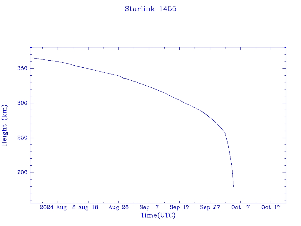 | Starlink 1455 | S45672 | R | 2020 Jun 4 | 2024 Jul 25? | 2024 Oct 4 |  |  |  |