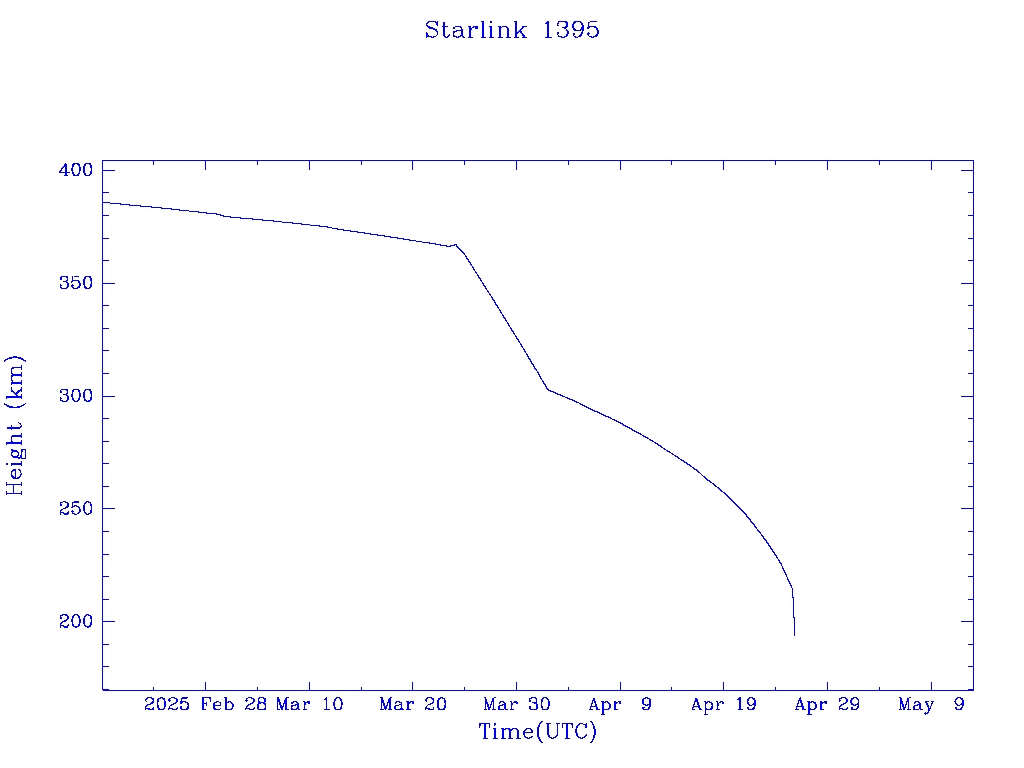 | Starlink 1395 | S45680 | R | 2020 Jun 4 | 2025 Apr 1? | 2025 Apr 26 |  |  |  |
