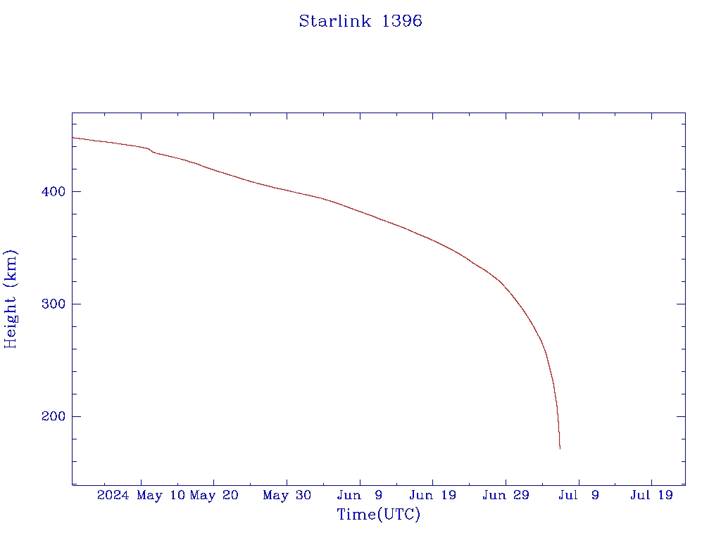 | Starlink 1396 | S45681 | M | 2020 Jun 4 | 2023 Jun 26 | 2024 Jul 6 |  |  |  |
