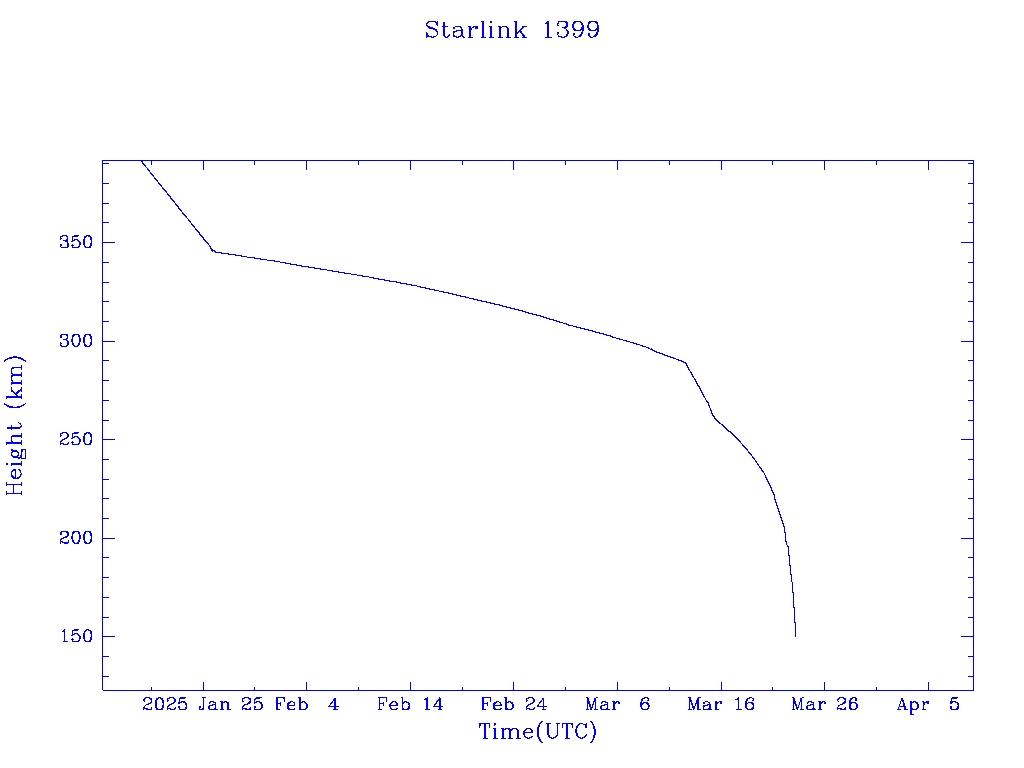 | Starlink 1399 | S45683 | R | 2020 Jun 4 | 2025 Mar 15? | 2025 Mar 23 |  |  |  |