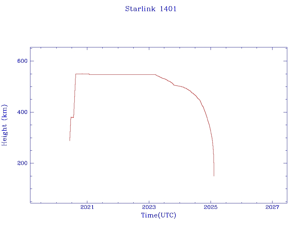 | Starlink 1401 | S45684 | M | 2020 Jun 4 | 2023 Oct 21? | 2025 Feb 7 |  |  |  |