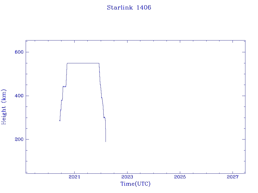 | Starlink 1406 | S45687 | R | 2020 Jun 4 | 2022 Mar 1? | 2022 Mar 6 |  |  |  |