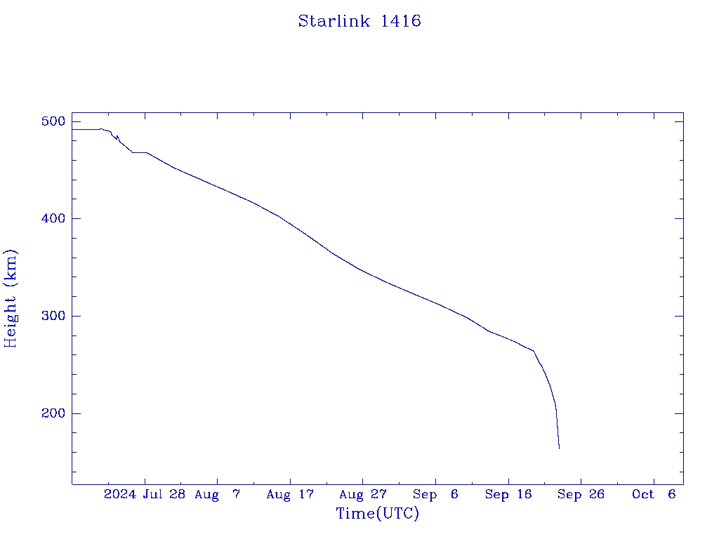 | Starlink 1416 | S45692 | R | 2020 Jun 4 | 2024 Sep 19? | 2024 Sep 23 |  |  |  |