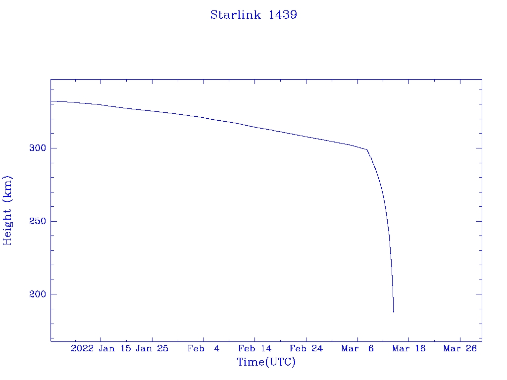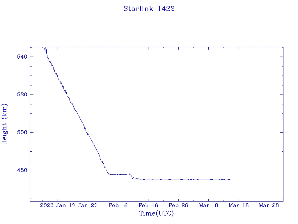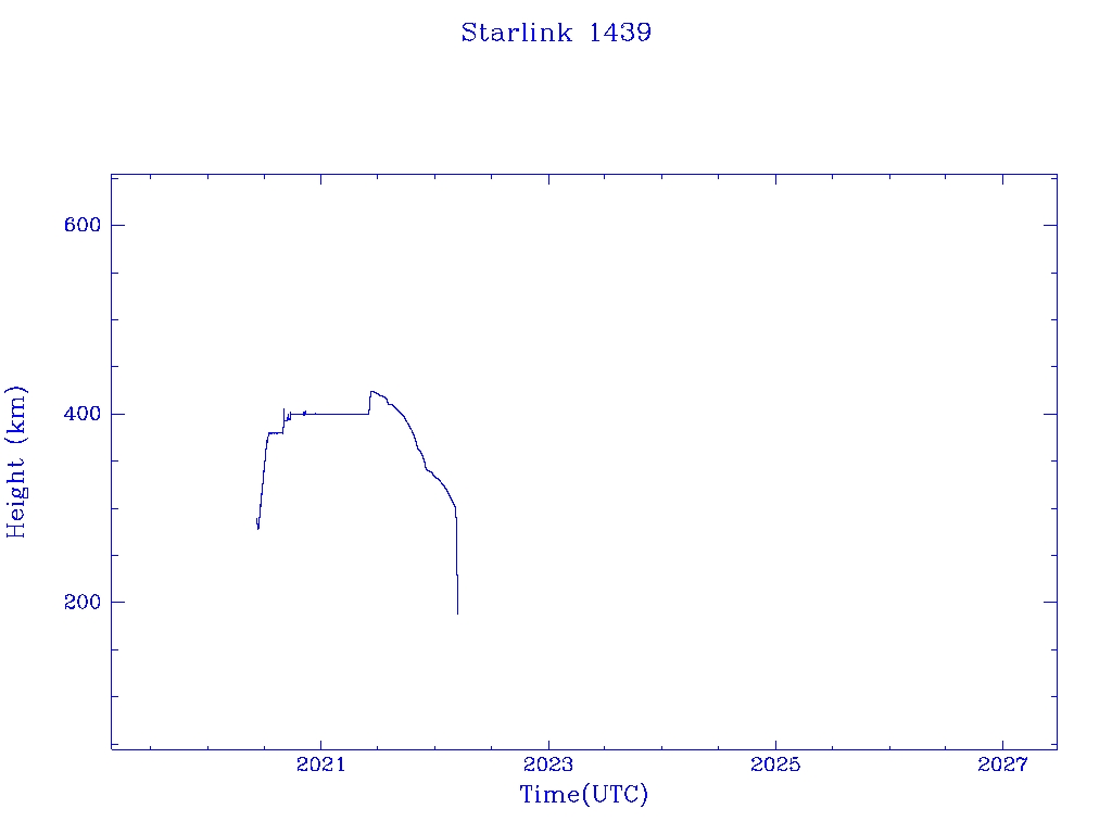 | Starlink 1439 | S45716 | R | 2020 Jun 4 | 2022 Mar 8 | 2022 Mar 13 |  |  |  |