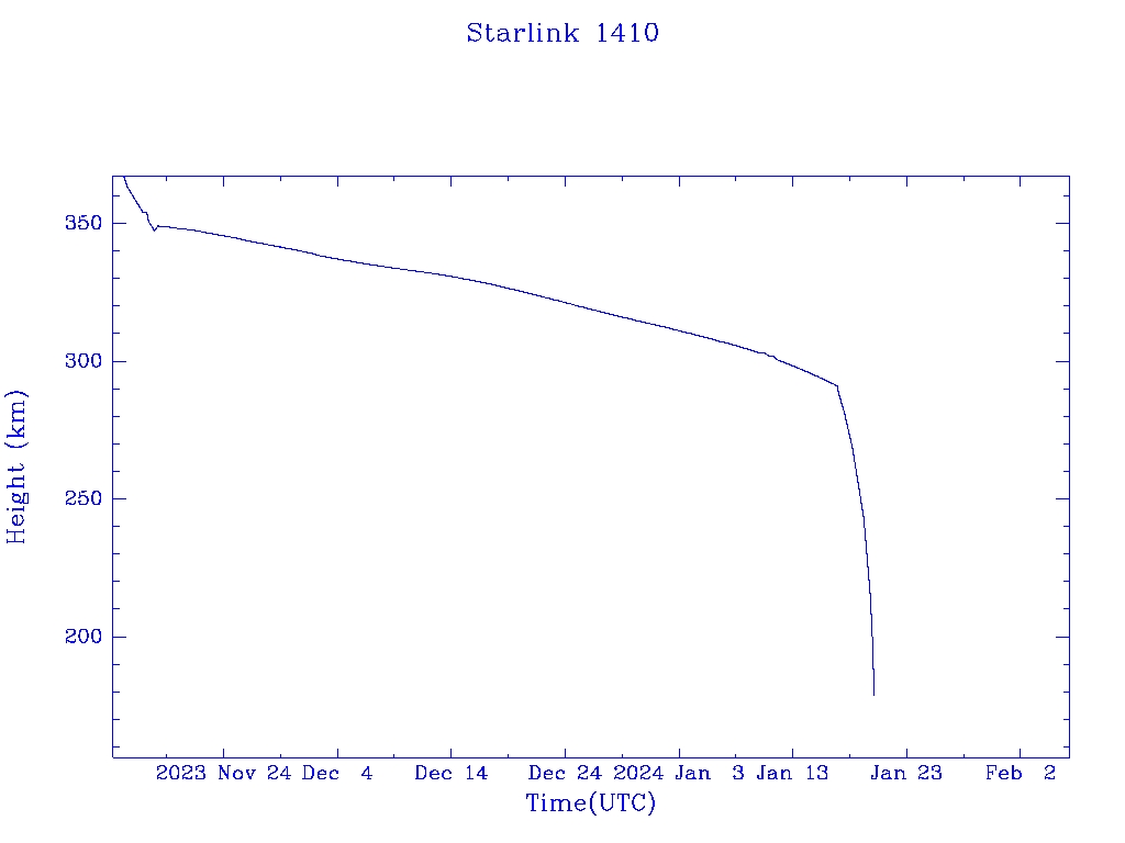| Starlink 1410 | S45705 | R | 2020 Jun 4 | 2024 Jan 16? | 2024 Jan 20 |  |  |  |