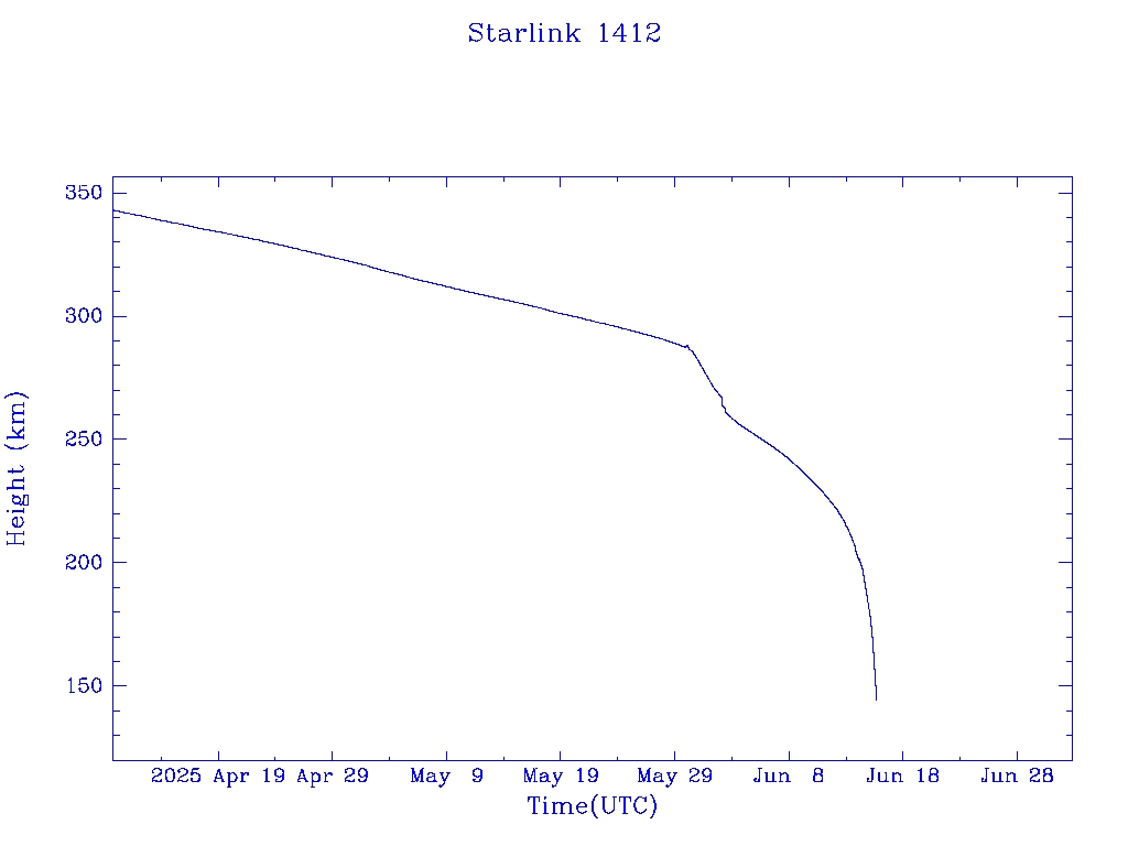 | Starlink 1412 | S45707 | R | 2020 Jun 4 | 2025 Jun 1? | 2025 Jun 15 |  |  |  |