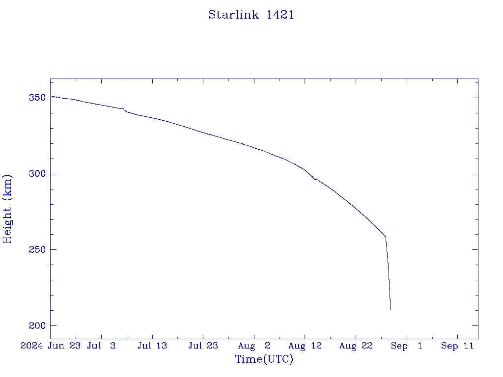 | Starlink 1421 | S45709 | R | 2020 Jun 4 | 2024 Jun 8? | 2024 Aug 29 |  |  |  |