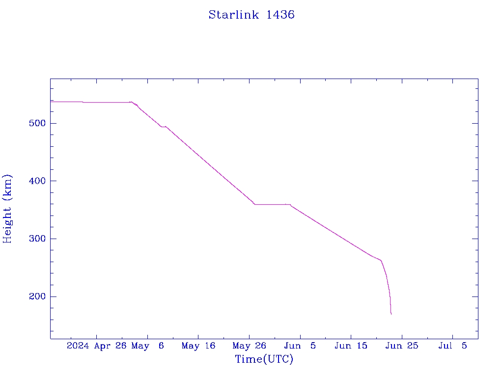 | Starlink 1436 | S45713 | M | 2020 Jun 4 | 2024 Jan 4 | 2024 Jun 22 |  |  |  |