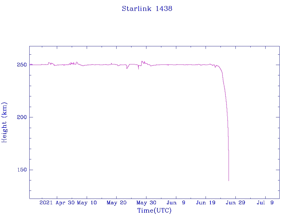 | Starlink 1438 | S45715 | F | 2020 Jun 4 | 2021 Jun 23 | 2021 Jun 26 |  |  |  |